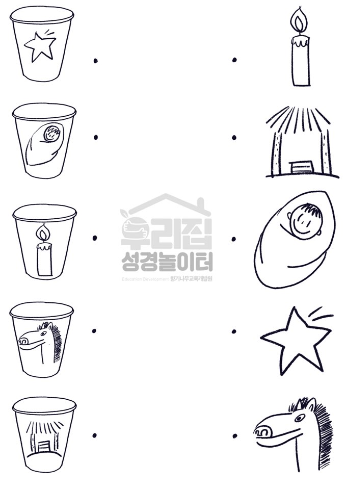 그림을 보면서 마구간에 태어나신 아기 예수님에 대해 자연스럽게 이야기하는 시간을 가져보세요.